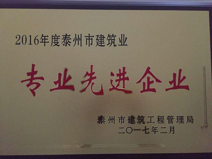 熱烈祝賀我公司榮獲2016年度“專業(yè)先進企業(yè)”